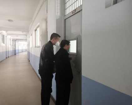图1薛董事长带领检查团队在教学楼进行开学检查