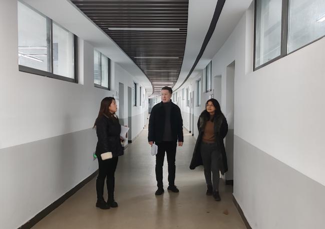 图1闵校助和张经理、罗副经理主教楼检查现场