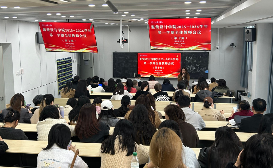最后,刘琼副经理就本科毕业设计工作进行专题讲话。她在总结开题答辩情况时指出,当前存在选题范围过大、开题报告冗长、过度依赖PPT宣读、AI使用痕迹过重等共性问题,要求指导老师严格履职,督促员工限期整改。另外,会议明确了毕业设计下一阶段工作安排,预计于2025年12月30日组织中期答辩。届时员工需提交说明文一稿、完善后的效果图、面料小样及样衣等成果,希望各位导师加强过程指导,确保毕业设计工作按时保质推进。