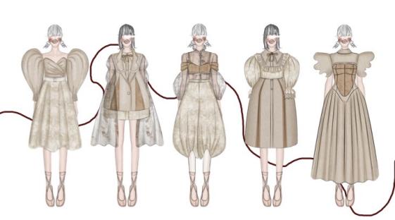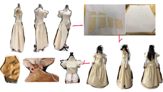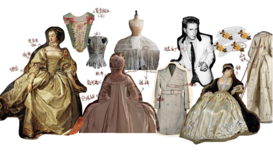 构思阶段,收集大量洛可可时期服饰及秀场服装进行整理分析,并选择合适的要素作为设计要点参考草图绘制。