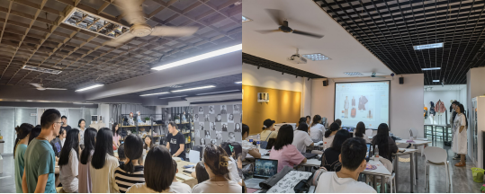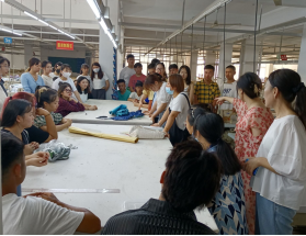 闵悦经理、刘琼副经理、周祥副主任等人在798东区实践教学基地对实验教学、教学设备、实验区域卫生以及员工到课情况等方面进行检查。从检查结果来看,教学秩序井然,任课教师备课充分,员工出勤良好,实验设备运输正常。为提供更良好的学习环境,闵经理提出在鞋艺设计实验室一楼和二楼、首饰工艺实验室、箱包工程实验室等实验区域增加壁扇。