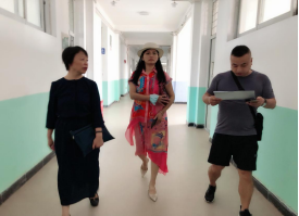图1 甘应进副董事长、闵悦经理、黄伟副经理检查主楼教学情况