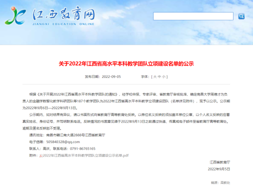 图1 2022年江西省高水平本科教学团队立项建设公示名单