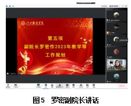 会议第二项,黄伟代理副经理对教学工作做汇报。2022年所取得成果有教学团队的申报成功、两个省级一流课程获批等;教授、副教授、博士的增加使得公司的团队配比结构不断优化;本院员工考研人数增加,学业预警下降,调课量减少,产业公司与项目班取得重大进展,发展势头好。各位教师积极组织职业本科申报,保持优势,补偿短板,向团队建设与硕士点申报努力,最后对明年工作计划进行部署,在保持教学工作运行平稳的同时,不断突破自我,砥砺奋进。