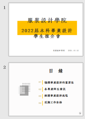 其次,2位专业负责人及2位教研室副主任为2022届本科毕业生客观地分析了服装与服饰设计专业和产品设计专业,毕业生与指导教师的配比问题,其中时装设计专业指导老师56组,毕业生371人;服饰设计指导老师15组,毕业生138人;奢侈品设计与管理指导老师12组,毕业生70人;品牌策划与时尚买手指导老师7组,毕业生45人;另外2021届未正常毕业员工6人,指导老师6组;双学位毕业生3人,指导老师1组;合计2022届毕业生共634人,指导教师90人。