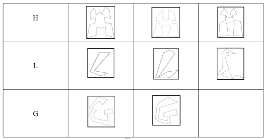 提取涂鸦画HLG图案设计中的英文字母:HLG(Handmade leather goods)意为手工之意。进而对HLG字体参照涂鸦字体规律来重新设计,得到了以下设计变化后的HLG图形。
