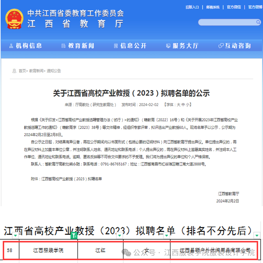 2月2日,江西省教育厅公示了江西省高校产业教授(2023)选聘名单,公司推荐的江西昌硕户外休闲用品有限公司技术总工江红博士成功获批为江西省高校产业教授。