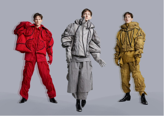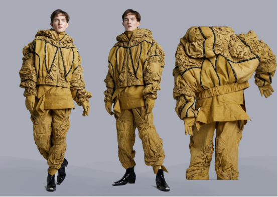 本次设计采用了复古游戏和科幻外星的结合,把科幻和电子游戏带进现实,时尚本就是一种轮回,将其结合起来会有一种视觉冲击感,表面涂上蜡涂层,棉布为底,保暖切柔软,更符合现实生活的舒适度。当今人们的审美逐渐提高,已经可以把科技感时尚从电子屏幕中带进现实,和传统服装逐渐结合,这将会成为一种更超前潮流的搭配。