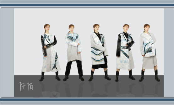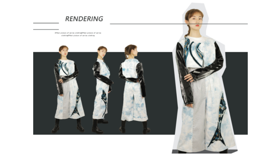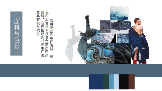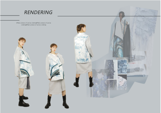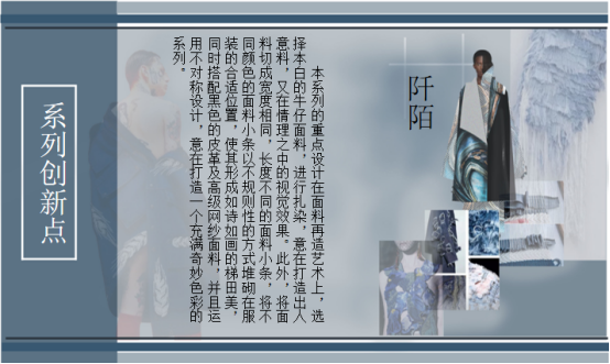 本系列的重点设计在面料再造艺术上,选择本白的牛仔面料,进行扎染,意在打造出人