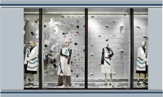 同颜色的面料小条以不规则性的方式堆砌在服装的合适位置,使其形成如诗如画的梯田美,
