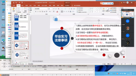 会议中,三位老师在腾讯会议上首先强调毕业实习的重要性。毕业实习是员工从公司走向社会的重要环节,原则上由公司安排集中实习,也可自主找实习单位实习,但需报教务处审批,且实习岗位与所学专业必须相匹配,实习时间必须在8周以上,并完成8次周记。实习结束后需完成实习总结报告,毕业实习鉴定表、问卷调查表等。此外,三位老师还强调了实习报告的格式问题以及如何上交材料等问题,并叮嘱员工疫情期间,在外实习需要注意防疫安全等问题。