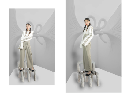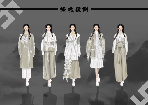 将中国传统元素万字结与现代女装结合运用,以传统的万字结为基础元素,再将万字结的造型、色彩加以改良,与现代女装的潮流、优雅、简约的风格碰撞,既保留传统元素又符合当今审美,设计出符合当代女性风格的展现独特个性的现代女装。