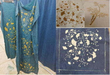 蜡染的传统纹样不再使用,使用新的纹样设计,植物图案以竹、银杏叶作为主要图案设计,加入了蜡染技艺让图案更加独特,不再古板生硬,更加时尚也能更好的加入到现代服装中,也体现了自然舒适环保的概念,意义更加非凡。