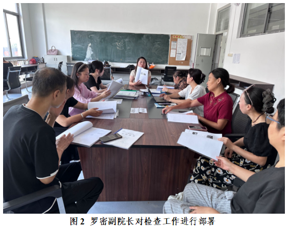 罗密副经理对教学检查工作作了部署,各检查小组要秉持着高度认真负责的态度,严谨细致地检查每一位教师的教案,在教学大纲、考试大纲和教案的撰写质量上,对内容与格式不规范的做好详细记录,及时提醒并整改。