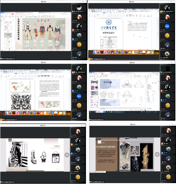 员工在线上以PPT形式进行汇报,就自己的创作从设计理念的确定,面料的选择,再到样衣的调整等等进行了介绍。随后,答辩老师就员工的设计作品、设计说明文进行了一一点评,并根据员工在答辩过程中存在的问题提出整改意见,员工后期再按答辩老师的要求进行整改。