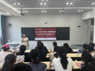 随后,蓝岚书记讲话,“以公司发展目标和本科教学审核评估为焦点,凝聚共识,提振精神,旨在发现不足,促进进步”。暑假期间,教职工助力完成了审核评估材料的修订及2024届毕业生的就业指导,就业率达到87.50%。新学期,公司首要任务包括:一是深化理论学习,秉持党的二十大精神与习近平新时代中国特色社会主义思想,巩固教育实践活动成果。二是创新党员教育,挖掘红色文化,增强教育实效。三是落实全面从严治党,强化党支部功能,严谨党员发展程序。四是树立党建特色,力争省级示范,加大典型宣传力度。五是强化师德建设,庆祝教师节,执行师德规范,整治不良风气。六是探索全员、全程、全方位育人新路径,提升教师素养,推广思政精品,强化心理教育,优化资助体系,营造优良学风。