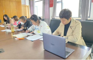 图1 院校督导(从右至左:胡艳丽、刘琼、李淑敏、付洁、林燕萍)聆听新进教师开展公开教学