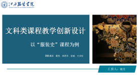 参赛教师有黄春岚教授、钟兴副教授、戴莹副教授、胡潮江和马婷婷五位老师,她们分别就《服装画技法》、《服饰配件设计》、《服装史》、《女装设计》和《3D软件设计》几门课程进行一一汇报。包括教学方法创新、课程设计创新、教学资源开发等方面,通过引入新的教学技术、设计独特的课程内容及提供个性化的学习体验,展示了她们在教学中所采用的创新方法、策略和教育理念,并分享了她们取得的成果。