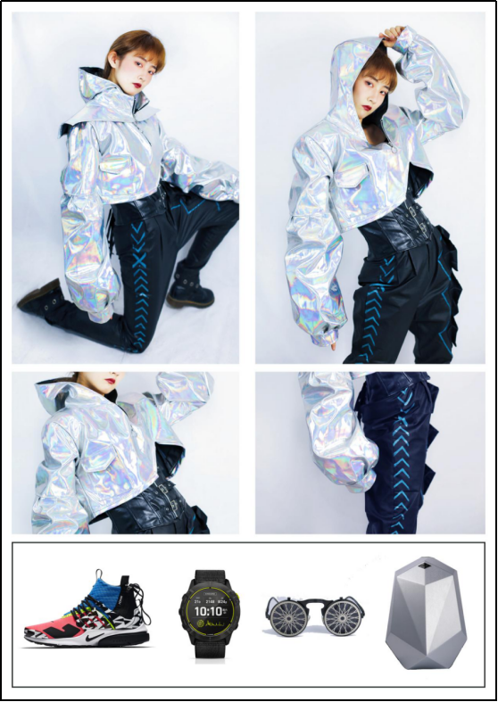 赛博朋克表达了对未来生活的想象,科技发展使现实与虚拟之间的界限越来越模糊,赛博朋克也逐渐成为了当今国内外各大服装品牌追随的潮流方向。其视觉冲击和想象空间能赋予服装设计以灵感,其中很多“功能性”也可运用到服装设计中,具有较强的实用意义。