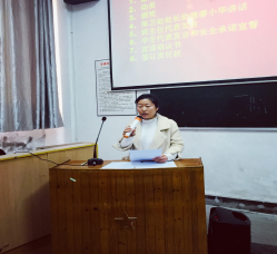 首先,公司邓、王两位书记重点强调了公司即将迎来的本科教学合格评估工作,要求全体师生应以“主人翁”的姿态,以饱满的热情和高昂的斗志积极参与迎评的战斗中去。同时也强调关于公司禁止使用大功率电器、员工外宿、驾驶三无车辆、网贷、防骗等相关注意事项,并在本次大会中表彰了15服饰本2班,16时装9班,16服饰本1班3个班级为“和谐文明平安班级”。