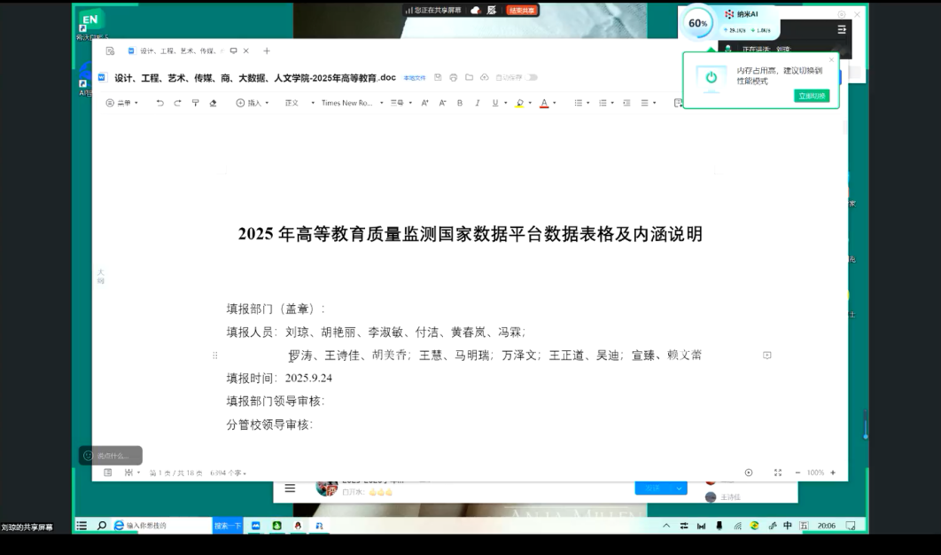 (MK体育讯通讯员:王正道)高等教育质量监测国家数据是反映高校办学内涵、支撑教育决策的核心要素,关乎公司办学定位精准落地与高质量发展全局。9月18日20:00,MK体育聚焦数据填报“准确性、完整性、时效性”核心要求,召开2025年高等教育质量监测国家数据填报工作专题线上会议,系统部署各项任务。公司副经理刘琼主持会议,校督导胡艳丽、冯霖,院督导黄春岚、李淑敏、付洁、冯霖,以及胡美香、罗涛、王诗佳等骨干教师与青年教师代表参会,构建“校院督导牵头、骨干力量支撑、青年教师协同”的工作格局。