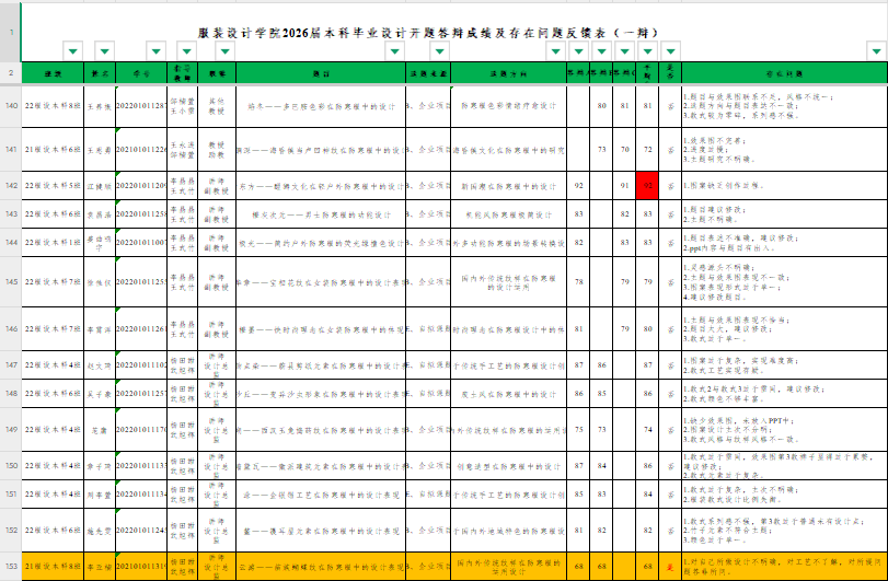 会议伊始,刘琼副经理对开题答辩整体工作予以总结。她指出,本届开题答辩:服装与服饰设计专业335人(另有12名往届生),小计347人;产品设计专业70人(另有2名往届生),小计72人,2026届毕业生应为419人。其中一辩:5人延期,5人未通过,6人未参加;88分及以上成绩32人,占总人数的7.64%,超过优秀5%;70-79分161人,占总人数的38.42%。23个答辩小组在师生的共同努力推进下有序完成,师生展现出严谨的学术态度与积极的创作热情,为毕业设计质量奠定了基础。