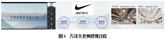 万泽文老师讲授的时尚买手,主要针对的是中西方零售业态比较进行讲授,授课时注重与同学们的沟通,问题的解答清晰易懂,授课气氛良好。