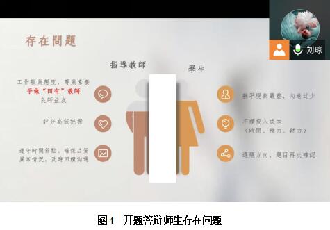 会议共有四个部分组成:1.师生分组情况;2.开题答辩组织、开展情况;3.存在问题;4.后阶段工作安排。