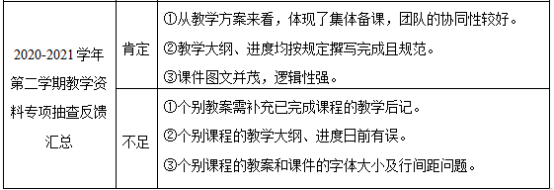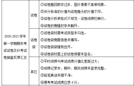 会议首先由校督导吴国辉教授针对校质评中心抽查试卷抽查情况作出汇报。其次,由院督导李淑敏针对2021届本科毕业设计说明文二稿抽查中存在的问题进行反馈。再次,由院督导胡艳丽针对2020-2021学年第一学期期末考试试卷及补考试卷抽查中存在的问题进行反馈。然后,由院督导林燕萍针对2020-2021学年第二学期教学资料专项抽查明细及存在问题进行反馈。