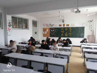 图2 布置妥当的答辩教室 图3 候场的同学安静的等待答辩