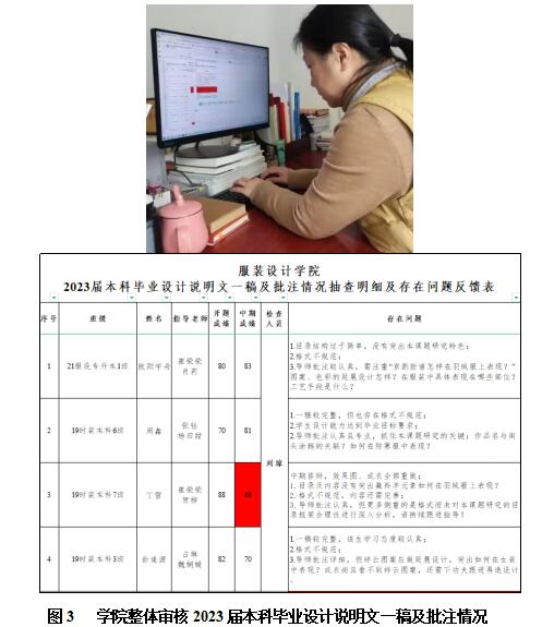 本次抽查专项工作的抽查内容为:1.一稿格式是否参阅《2023届本科毕业设计指导手册》中要求的规范格式;2.一稿目录架构、摘要内容是否合理;3.一稿内容是否完整、质量如何、有无成衣坯样试制和改版、成衣出来几套、质量与效果图有无相关。各位抽查老师认真、如期完成了抽查工作,并在反馈表中详细列出了各项问题。