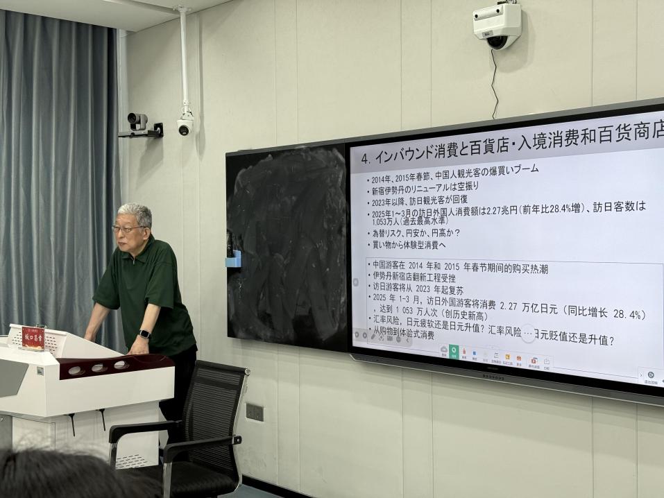 本次培训由工程公司与艺术公司的两位教师担任现场翻译,协助交流。在培训中,坂口昌章先生为我们讲述“日本时尚商业的现状和课题”,以自身的经历作为参考为我们提供后续服装业的发展思路。首先是日本服装业面临的消费者意识变化,近年来,日本消费者的时尚偏好和消费态度发生了显著变化,不同世代的需求差异明显,消费者的兴趣从“冷淡”到“狂热”呈现两极分化,市场不再由单一潮流主导,而是需要满足不同群体的个性化需求。谈及日本服装行业所面临的挑战时,坂口昌章董事长指出日本服装业自1990年代中期以来,经历了多重危机与挑战,并在COVID-19疫情的冲击,消费行为出现了变化:整理热潮和极简主义消费成为趋势,消费者更倾向于购买实用、耐用的服装。远程办公的普及导致睡衣和居家服装需求上升,而正装和旅行相关消费显著下降。并且,婚礼、葬礼等传统礼仪场合的简化,进一步减少了对特定服装的需求。对于消费者的转变及多重危机的出现,日本服装业长期依赖廉价市场和外包的运作模式出现问题,缺乏自主创新能力,而COVID-19疫情加速了行业的结构性危机。供应链中断、消费行为变化以及数字化竞争的加剧,迫使企业必须重新审视生产模式、产品策略和市场定位,以适应后疫情时代的新常态。