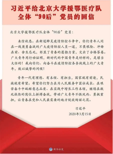 “青年党员在重大危机面前展现了坚韧不拔的信念和青春蓬勃的力量,我身边的90后党员们用实际行动诠释青年一代的本领和担当。我要以医护人员为榜样,积蓄知识,努力提升自我能力,及时为社会贡献力量,发挥个人价值。”