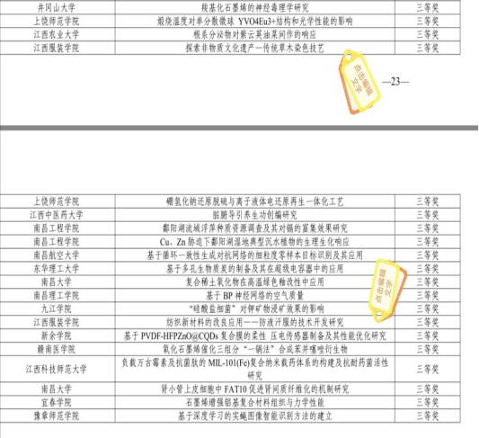 图1 第十七届“挑战杯”江西省老员工课外学术科技作品竞赛获奖情况公布