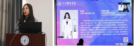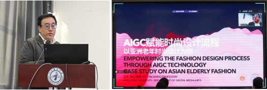 会议上,贾玺增教授亘古通今介绍了大量资料和设计实例,多维度阐述中国服饰文化独特的美学特征;彭晶博士从自身实践经历出发,讲述高定入行以来所取得的成就,从高定到传统文化过程中的心路历程和设计思路;王衍教授介绍AIGC人工智能技术自动生成内容赋能时尚设计流程,王衍教授认为现阶段AI算法具有审美趋同性,提出基于设计思维,优化应用AI技术为亚洲老年时尚服装设计提供新思路;