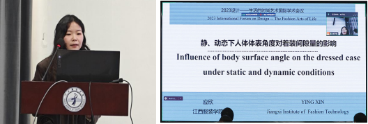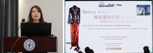 郭春丽博士以20世纪初至现代的娘惹杉的演变为例,介绍了娘惹杉的发展历程、影响因素和文化内涵;应欣教师从间隙量这一概念出发,分析静、动态下人体体表不同角度对着装间隙量产生的影响。