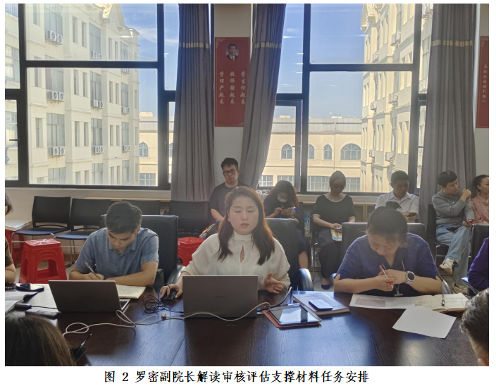 罗密副经理首先对本院的审核评估支撑材料任务安排做了解读,再一次让各位老师明确了自己的任务内容以及材料需要上交的时间。根据支撑材料的参考目录,各位老师也反馈了在支撑材料收集的过程中遇到的困难,罗密副经理也在会上协调帮助老师们解决相关的问题。