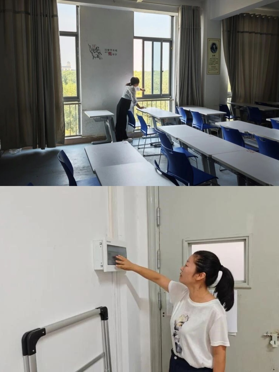 辅导员还对授课教室、公司办公室等公共区域开展安全检查:在授课教室,确认多媒体设备、照明系统运行正常,黑板下方应急照明装置可正常启动;在办公室,核查文件柜、电源开关等是否存在安全隐患,提醒公司教师假期前关闭非必要电器电源,做好办公区域防盗措施。