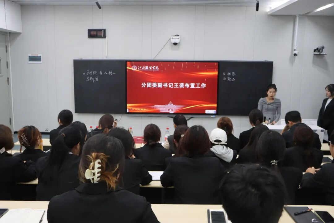 紧接着,分团委副书记王袭布置各员工部门的工作,指出员工干部作为公司工作的重要力量,应在思想觉悟、纪律意识、工作能力等方面发挥模范带头作用。“团学组织是服务同学的桥梁,唯有严守纪律、提升素养,才能更好地履行职责。”她结合公司发展规划,对新学期分团委、员工会工作进行全面部署,涵盖学风建设、专业实践活动、校园文化品牌打造等重点领域,鼓励全体干部积极创新,打造具有服装设计专业特色的精品活动。她特别提到,公司当前正处于申硕的关键时期,全体团学干部要以更高的标准要求自己,为公司的申硕工作贡献力量。