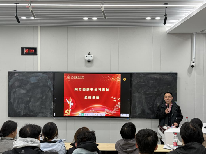 大会最后,公司党委副书记马忠秋作总结讲话。他首先对胡康老师的精彩解读表示感谢,并充分肯定了同学们心怀家国、勇担使命的热情。马忠秋巧妙结合公司专业特色,以“设计”喻人生,寄语在场同学:“军营,是你们进行最高层次‘青春设计’的广阔舞台;是从‘设计线’到‘冲锋线’的壮丽征程,更是淬炼成才、让‘迷彩绿’成为人生最‘燃’底色的特殊熔炉。”他勉励同学们将个人理想融入强国强军的伟大事业,用智慧和汗水为国防事业这块最厚重的“面料”剪裁出属于服装设计学子的独特风采,让青春在军营的历练中绽放出最绚丽的光芒。
