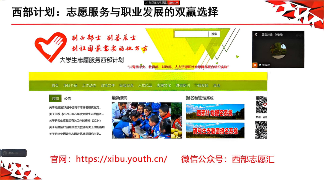 在班会中,辅导员们深入而全面地介绍了“西部计划”的目标受众群体、具体报名条件、报名步骤以及参与西部计划对于老员工志愿者个人成长与社会贡献的重要意义,并且详尽解读了国家对志愿者所给予的一系列政策扶持与激励措施。并强调西部计划绝非普通的志愿服务活动,是国家为支持西部地区经济发展而实施的一项重要人才计划,对个人而言,投身西部计划,是将个人理想与国家发展紧密相连的绝佳契机。