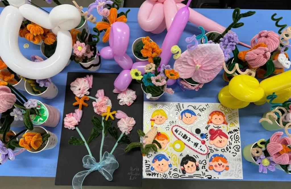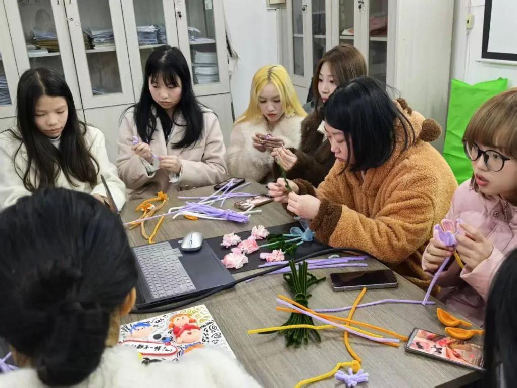 在制作过程中,同学们充分发挥创造力。有人精心搭配色彩,用明艳的黄色与粉嫩的红色扭扭棒,制作出娇艳欲滴的玫瑰;有人则在花瓣形状上大胆创新,制作出造型独特的郁金香,还有人将多朵花组合,创作出寓意美好的花束。大家相互交流经验,分享创意,现场欢声笑语不断。