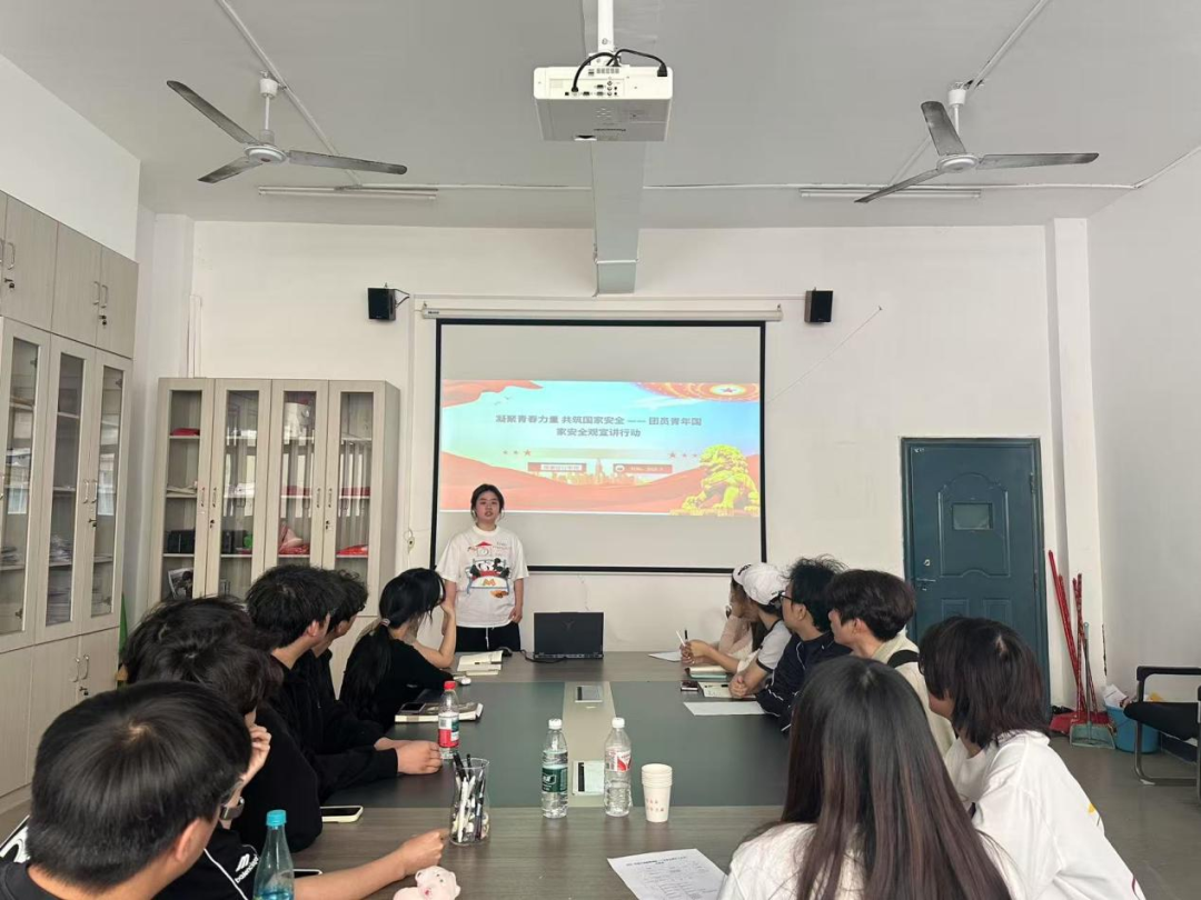 随后,活动现场播放了“团员青年国家安全宣讲行动”主题视频,聚焦科技安全、文化安全、生物安全等领域,展现了不同专业青年在维护国家安全中的生动实践:有服装设计专业毕业生通过非遗纹样创新守护文化根脉,有科研团队成员以技术攻关突破“卡脖子”难题……视频中同龄人扎根岗位、守护安全的故事让同学们深受触动。