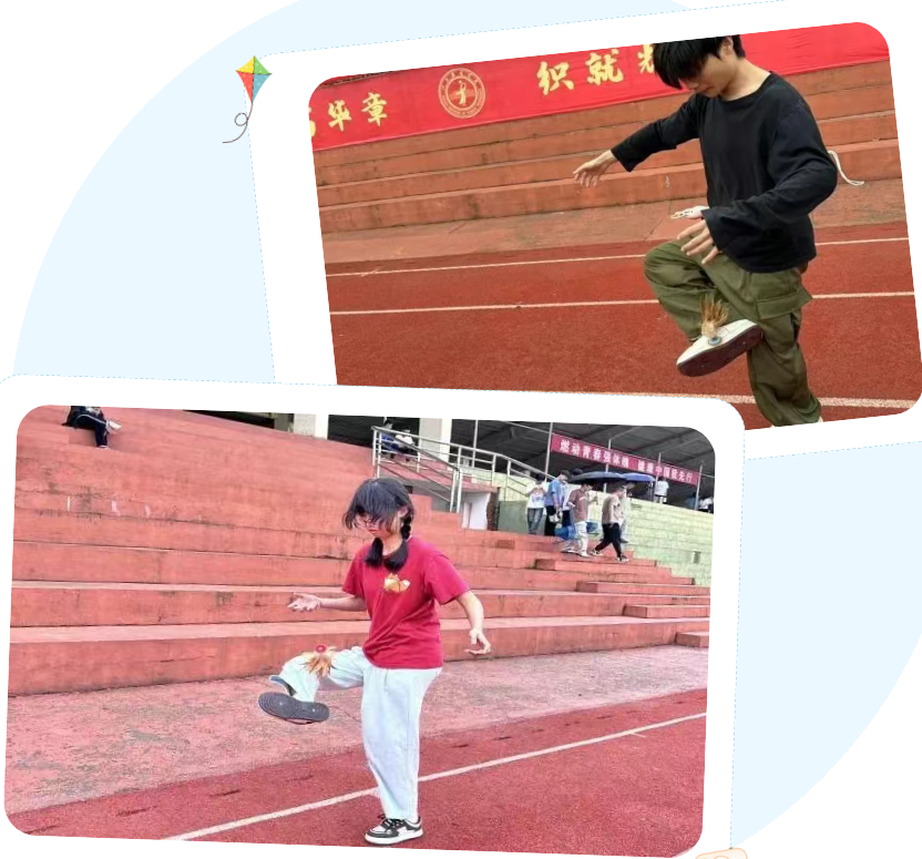 “稳住!别让‘蝴蝶’落地!”随着一声清脆的加油呐喊,踢毽子比赛现场化作一片五彩斑斓的活力海洋。从计时开始的那瞬间,同学们都展现出不服输的精神,动作利落。听到十五秒倒计时,同学们更是精神起来,圆形的比赛区域内,选手们目光紧盯空中上下翻飞的毽球,脚尖、膝盖、小腿灵活变换着“接球点”,恰似在演绎一场灵动的肢体舞蹈。一分钟计时结束时,听到同学们呼喊着胜利的喜悦。