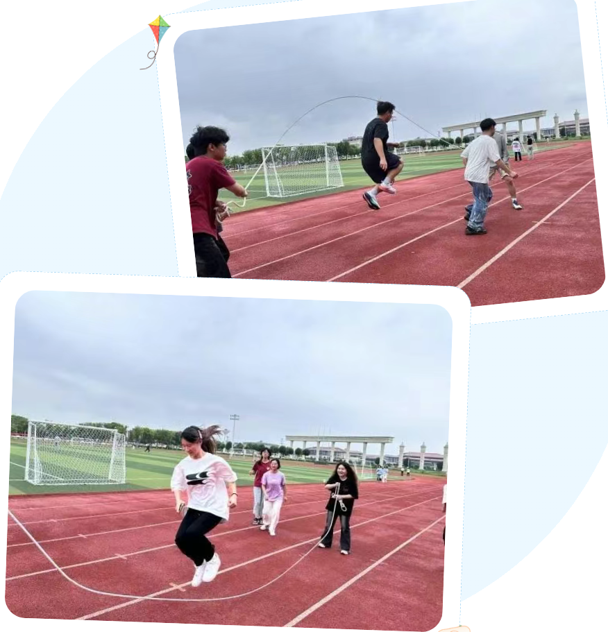 活动伊始,裁判员简单介绍比赛规则,本次活动设单人跳绳、集体跳绳、个人踢毽子三个项目,兼顾竞技性与趣味性。当“开始”的口令响起,跳绳与踢毽子的赛场瞬间化作两股燃烧的青春漩涡,汗水与欢笑在此刻撞出最耀眼的火花,参赛选手迅速进入状态:跳绳场地中,绳子翻飞如银蛇舞动,选手们脚不点地,以轻盈步伐挑战速度极限;踢毽子区域,五彩毽球上下翻飞,选手们眼疾脚快,用灵活技巧演绎“毽舞飞扬”。