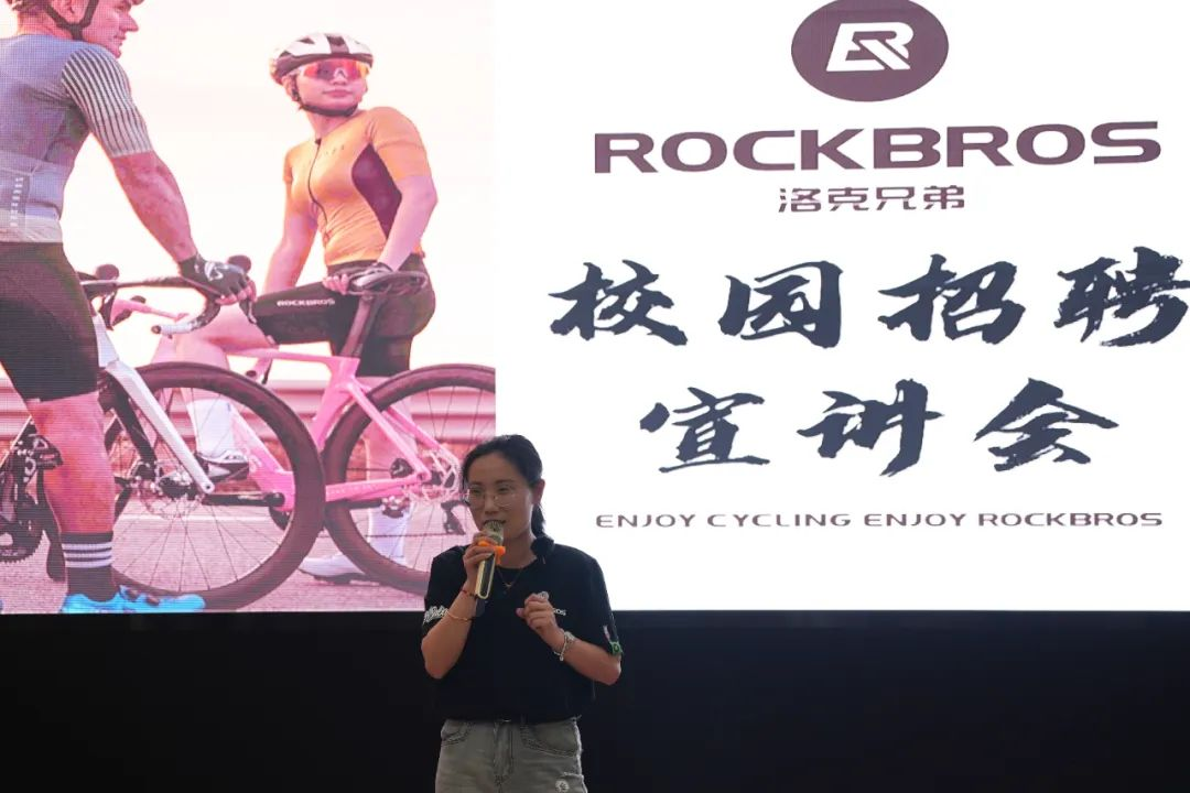 在骑行文化宣讲之后,洛克兄弟集团人力资源总监周女士上台,详细介绍了集团的招聘需求和岗位信息。她提到,洛克兄弟集团目前正处于快速发展阶段,急需各类专业人才,包括跨境电商运营、平面设计师、产品经理、采购等多个岗位。她强调,集团特别欢迎有骑行爱好和相关经验的员工加入,因为这种热情能够更好地融入企业文化。
