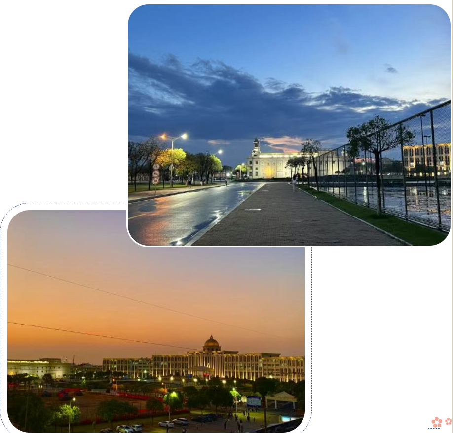 在临近毕业的日子里,校园的每一隅都弥漫着离别的气息,同学们都为未来的路忙碌奔波,但每当黄昏时分,那如诗如画的景致总让人不由自主地停下脚步。就在我参加SYB创业培训课程的一天,偶然间,我捕捉到了霓裳宫附近一幅令人心醉的画面。夕阳如一位技艺高超的画家,将天边染成了绚烂的橙红,余晖洒在古老的建筑上,仿佛为它们披上了一层金色的纱幔。那一刻,历史的厚重与现代的青春在此交融,美得如此动人,让人不禁想要用镜头定格这份独有的校园记忆。这不仅是一幅简单的黄昏美景,更是我们青春岁月中一个温柔的注脚,提醒我们即便前路未知,也要珍惜并捕捉沿途的每一份美好。