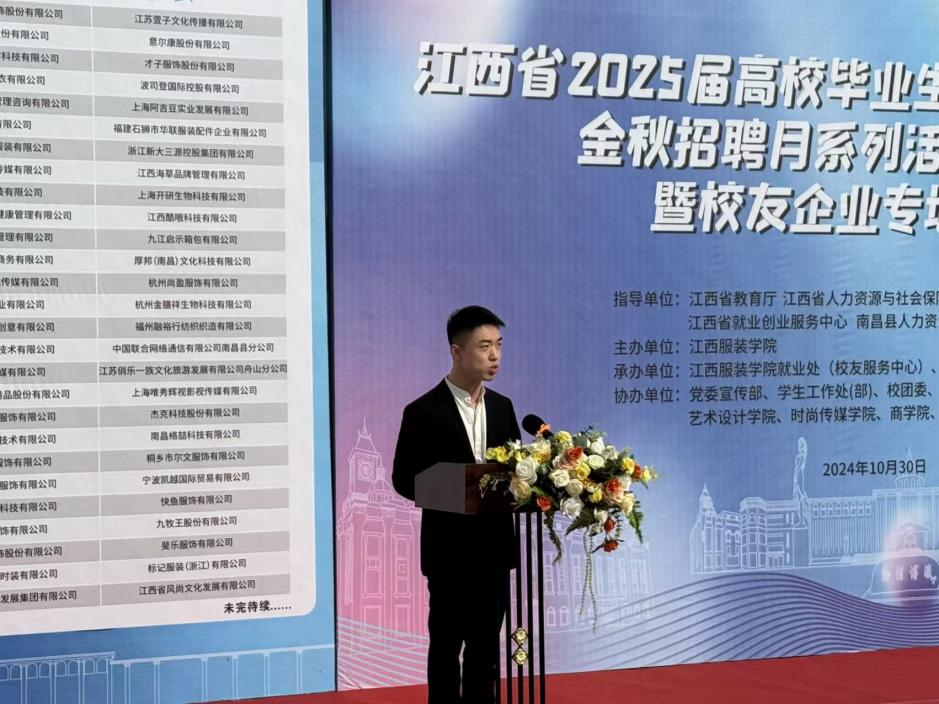 这是我作为2024年金秋招聘月系列活动启动仪式中毕业生发言的图片,从踏入MK体育起,我便一头扎进面料与剪裁的世界。毕业季求职时,带着满箱作品跑面试,幸得公司推荐与老师指导,终获波司登offer。感恩母校,让梦想从图纸照进现实。