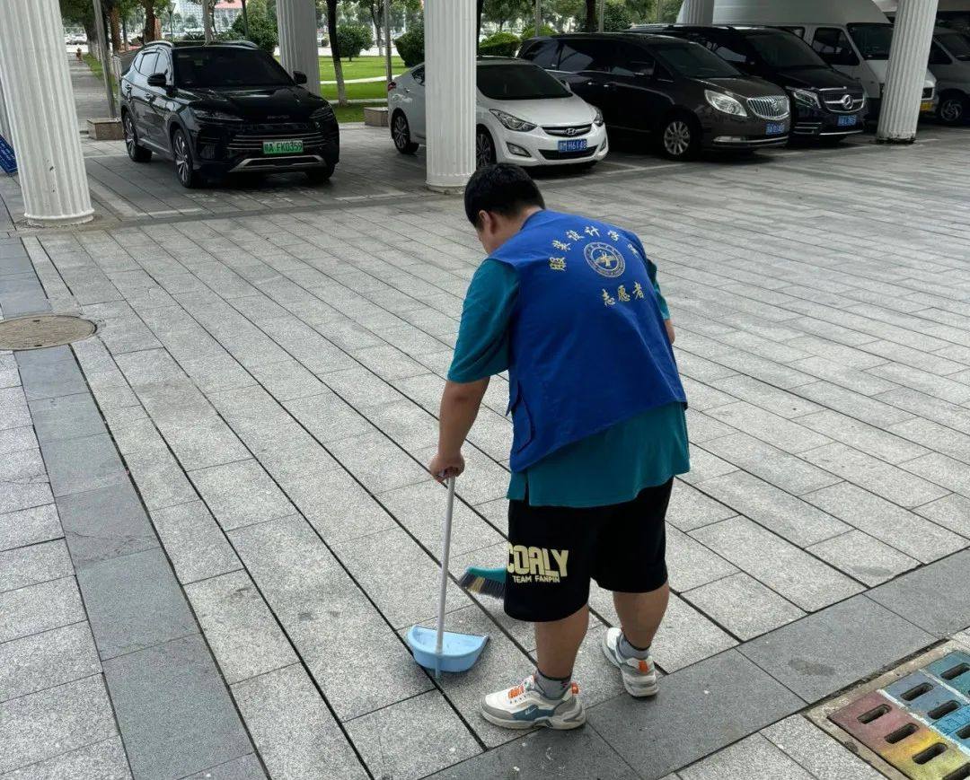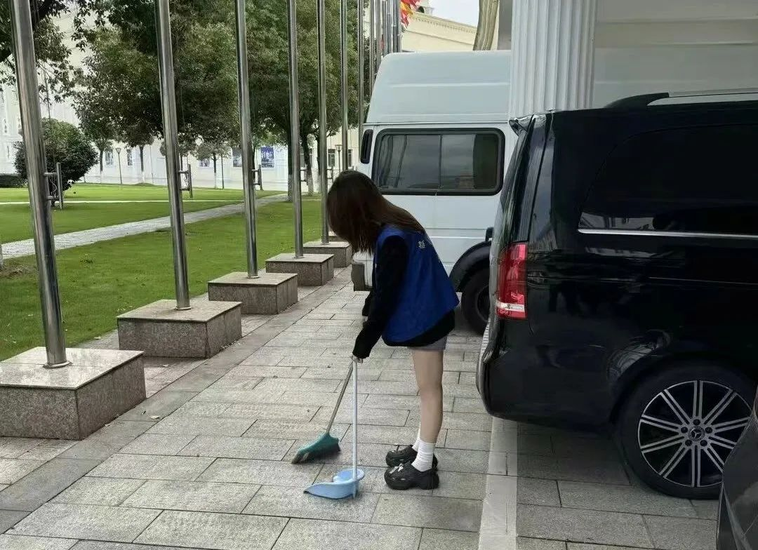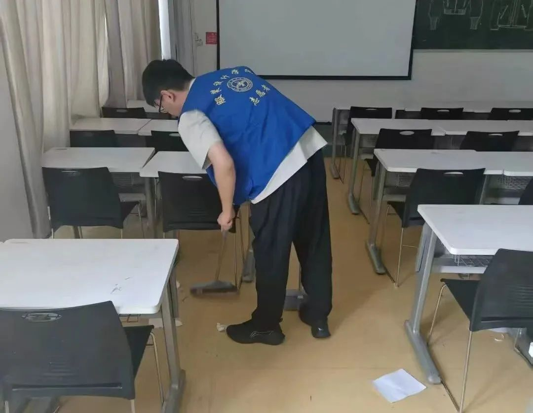 当天下午课间时分,志愿者们迅速集结,首先投入到班级卫生的“攻坚战”中。教室瞬间变成劳动实践的生动课堂。同学们分工明确,配合默契:有的手持扫帚,一丝不苟地清扫地面,不放过任何角落的灰尘与纸屑;有的则专注于擦拭黑板、讲台和每一张课桌椅,让教学设施恢复洁净本色。在清洁窗户玻璃时,同学们更是展现了服装设计学子特有的细致与耐心——他们先用湿布浸润污渍,再用干抹布反复擦拭,直至玻璃光洁如镜。阳光透过明亮的窗户洒满教室,不仅带来了物理上的光亮,更营造出温馨而充满活力的学习氛围。