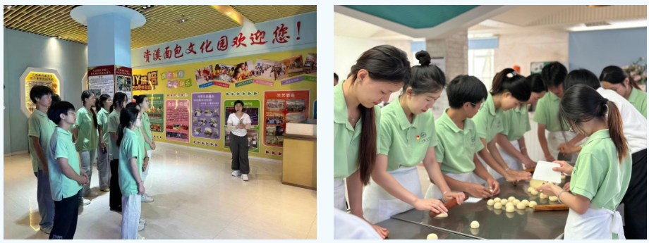 2025年6月27日上午,实践团成员走进资溪面包大厦。在讲解员的带领下,成员们深入了解资溪面包从“一根扁担闯天下”到形成百亿产业的奋斗历程。从街头小店到连锁品牌,从传统工艺到现代化生产,资溪面包人敢为人先的创业精神令成员们深受触动。随后,实践团成员走进面包制作工坊,亲身体验揉面、发酵、烘焙等工序,感受面粉在手中蜕变为美味面包的神奇过程。氤氲的麦香中,大家不仅掌握了面包制作技艺,更深刻理解了“小面包”背后蕴含的“大产业”智慧。